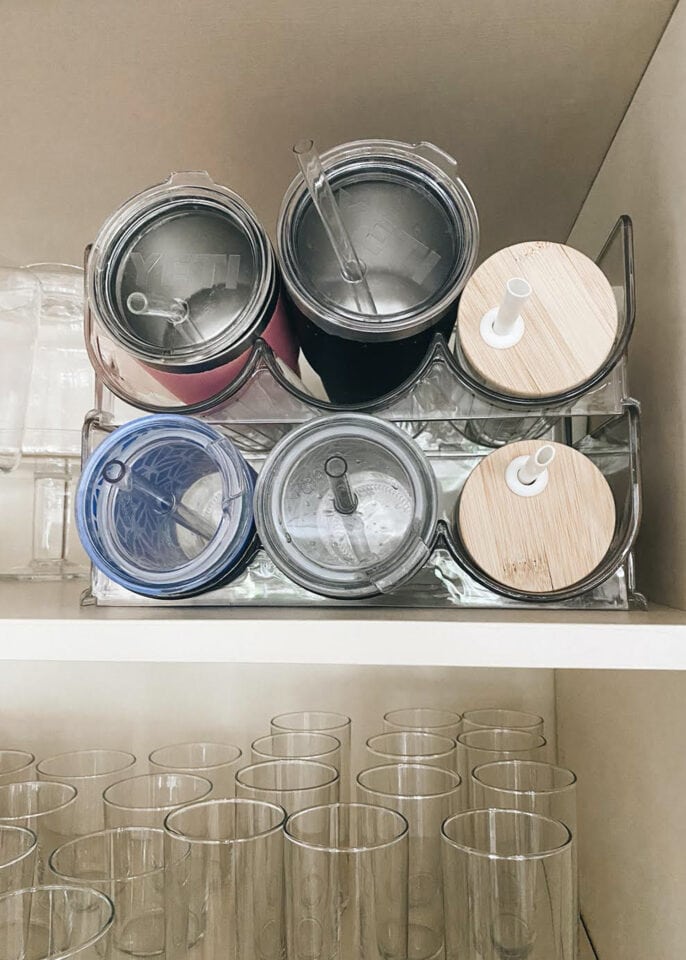 Water Bottle Organizer – Organizing our kitchen after moving in was a top priority and this water bottle organizer has been great for our cabinets. It’s under $30 and has 2 tiers. You can check out more home organization hacks in this blog post.