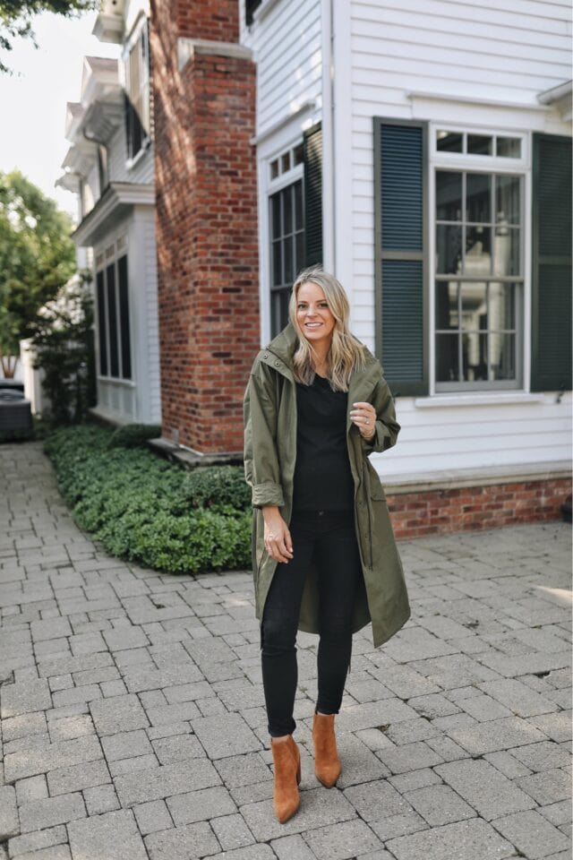 Longline Oversized Parka (XS) // Black T-Shirt (Sized up to a M to fit the bump) // Black Maternity Jeans (26-TTS) // Booties (TTS)